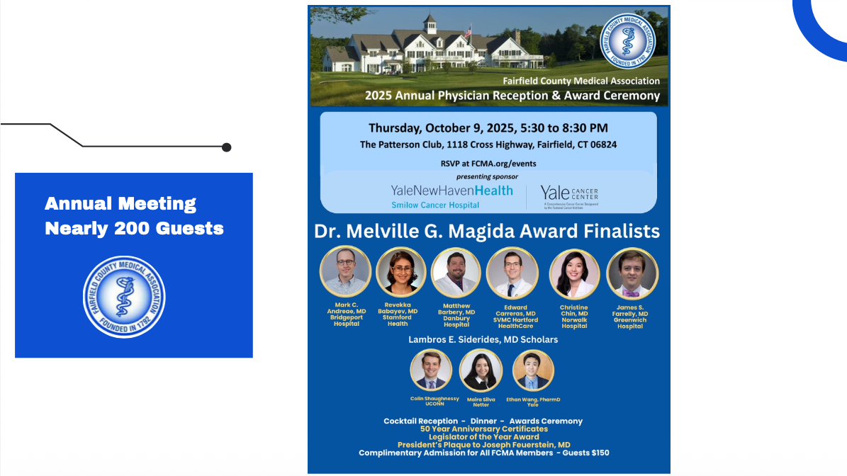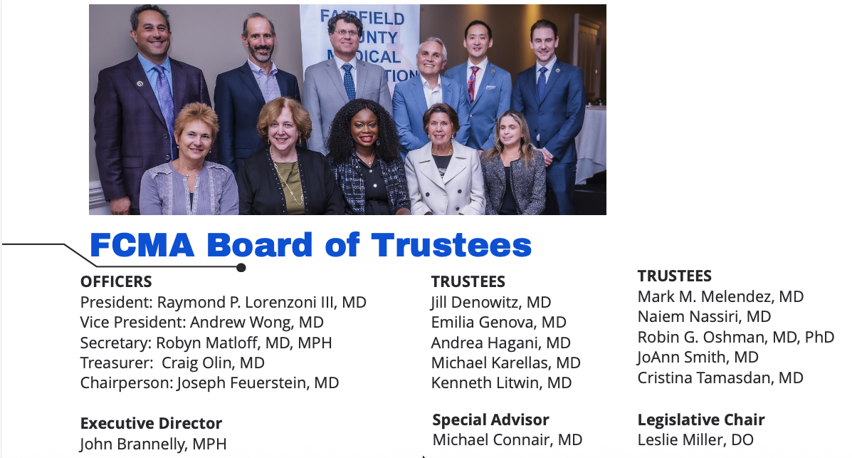 Joseph Feuerstein, MD has been elected president of the board of trustees of the Fairfield County Medical Association (FCMA) at its annual meeting. Professionally, Dr. Feuerstein is an attending physician at Greenwich Hospital. He is Assistant Professor of Medicine at Columbia University in New York, Assistant Professor at Quinnipiac University Frank H. Netter, MD School of Medicine and on the faculty of the University of Arizona Andrew Weil Center for Integrated Medicine. Dr. Feuerstein has a private boutique concierge practice in Greenwich serving lower Fairfield County residents. He previously served as Director of Integrative Medicine at Stamford Hospital. He now leads a physician organization with nearly 1,000 physician members.